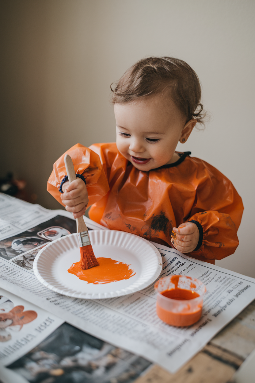 Give your toddler a paper plate and let them paint it orange using toddler-safe paint. If painting feels too messy, orange markers or crayons are a great alternative. Allow the plate to dry completely before moving to the next step.