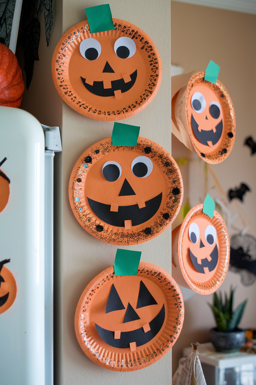 Keep wipes or a damp cloth nearby for quick paint cleanup, and cover your table with newspaper or a plastic cloth to manage spills. Once your pumpkins are finished, hang them on the fridge, display them on walls, or even create a string “pumpkin garland” for festive Halloween décor.